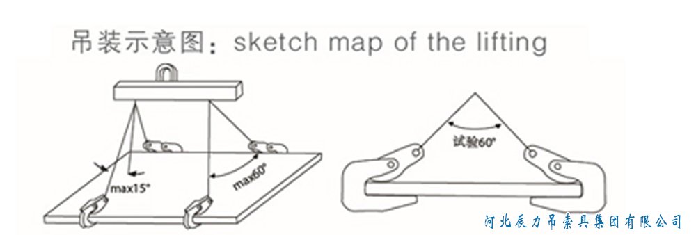 1.橫吊起重鉗的基本用法如圖所示,通過橫梁連接,組成兩對(duì)橫吊起重鉗。特別提示:橫吊起重鉗的安全工作載荷是指一對(duì)(兩只)橫吊鉗的載荷;起吊鋼板厚度是指吊鉗安全起吊鋼板的厚度范圍,起重吊鉗的實(shí)際開口度應(yīng)該大于鋼板的厚度。起吊前必須檢查鋼板的重量和板厚是否與起重鉗匹配。